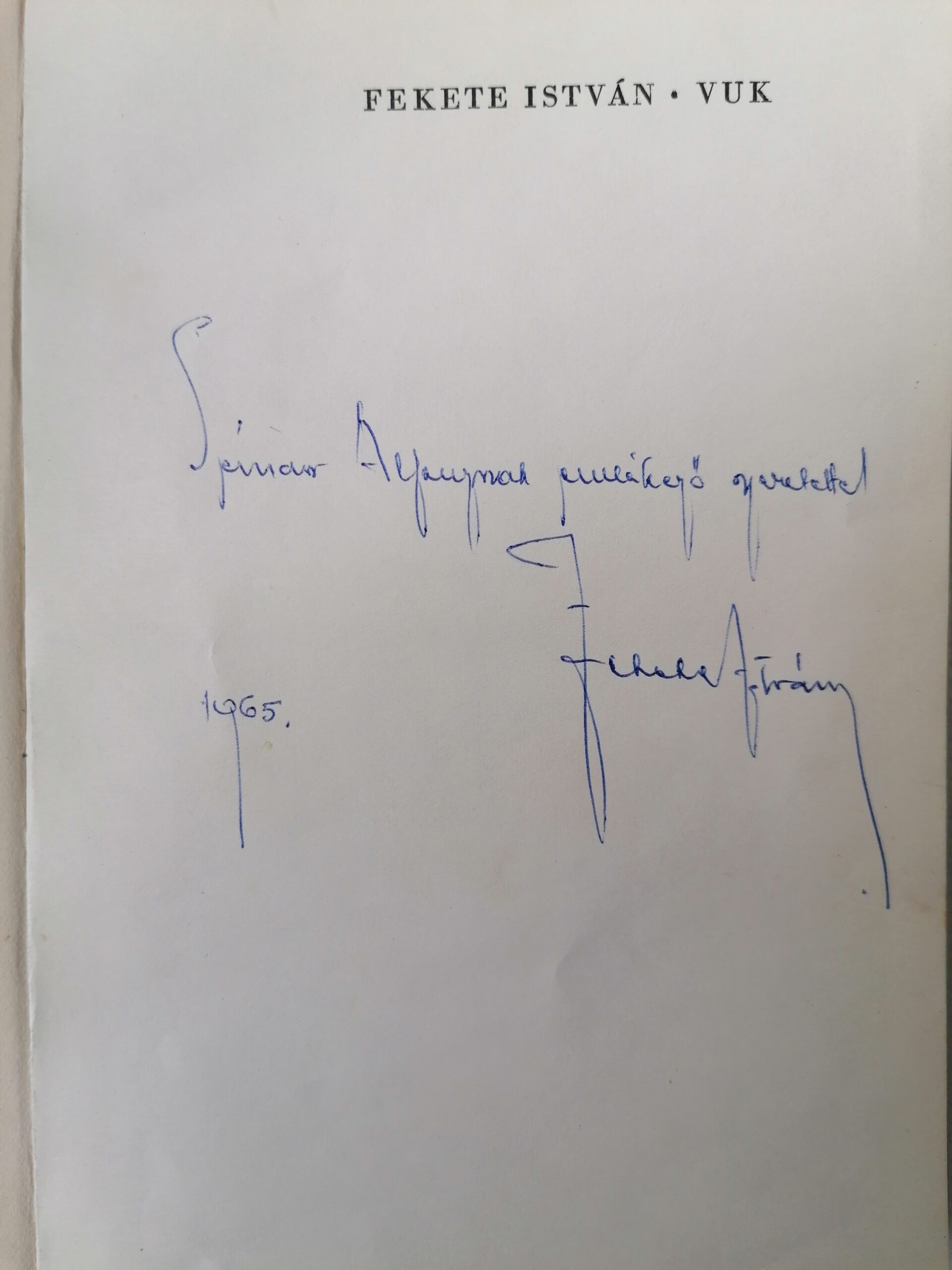 Among my father’s circle of friends, I must also mention István Fekete (1900–1970), a writer, from whom I have kept a handwritten business card addressed to my father, in which he inquires whether the books arrived safely. Fortunately, the two signed books, Vuk and Bogáncs, did arrive, and I have treasured and preserved them ever since.