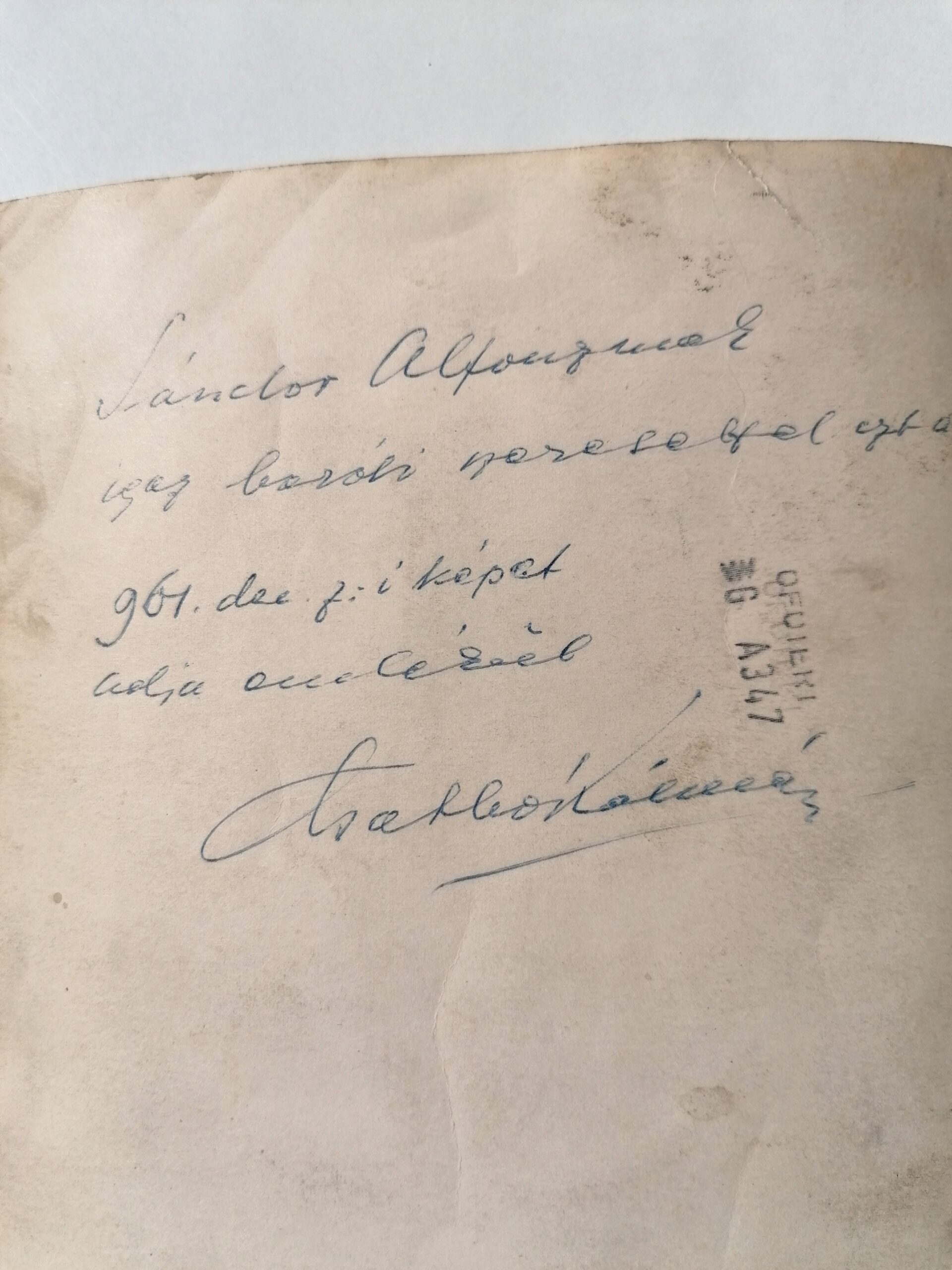 In 1961, Kálmán Csathó also sent another letter and a photograph to my father.