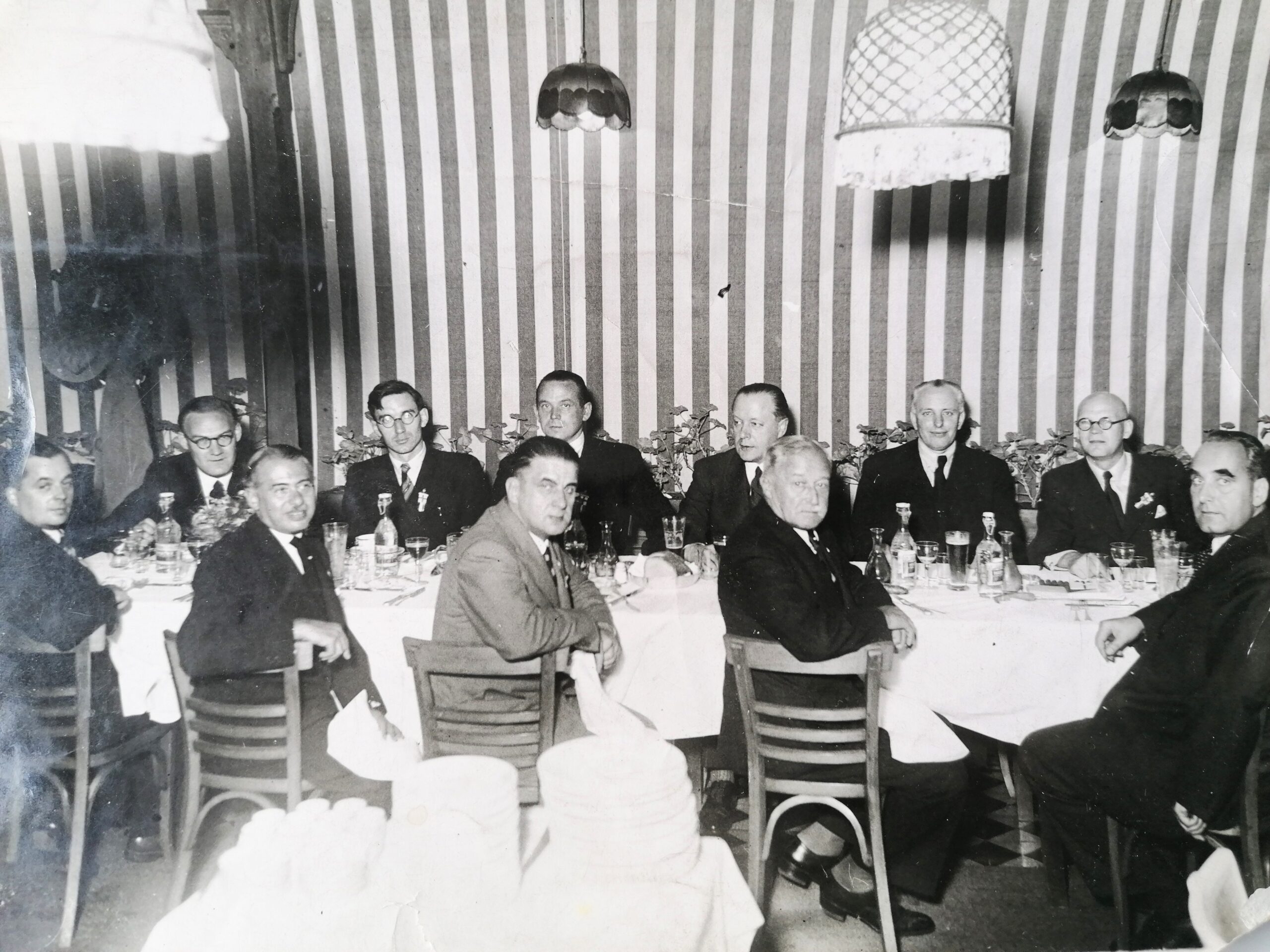 The first photo shows the founding meeting of the European Athletics Committee held in a private room at the Gundel Restaurant in 1934.